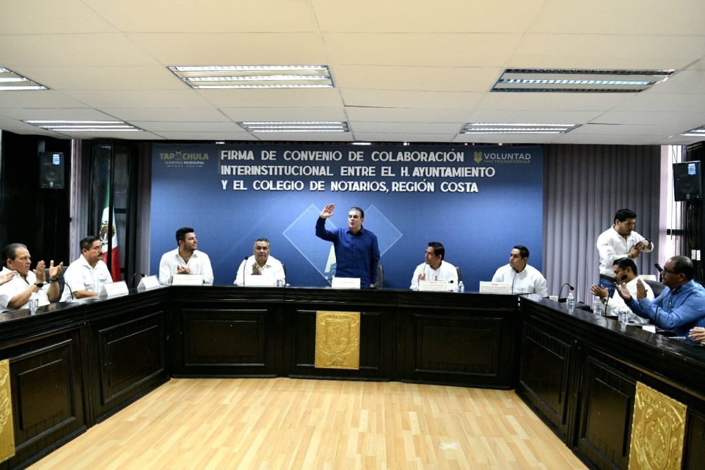 En un acto que reafirma el compromiso con la justicia social, el presidente municipal de Tapachula, Yamil Melgar Bravo, encabezó la firma del convenio de colaboración entre el Ayuntamiento y el Colegio de Notarios de la Costa de Chiapas.
