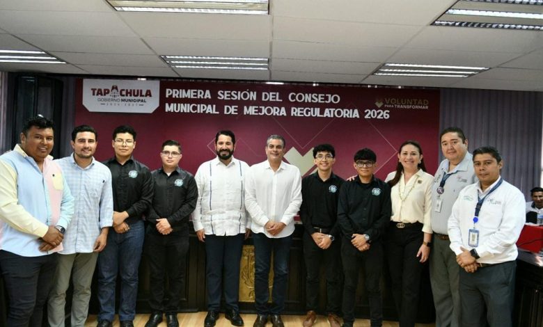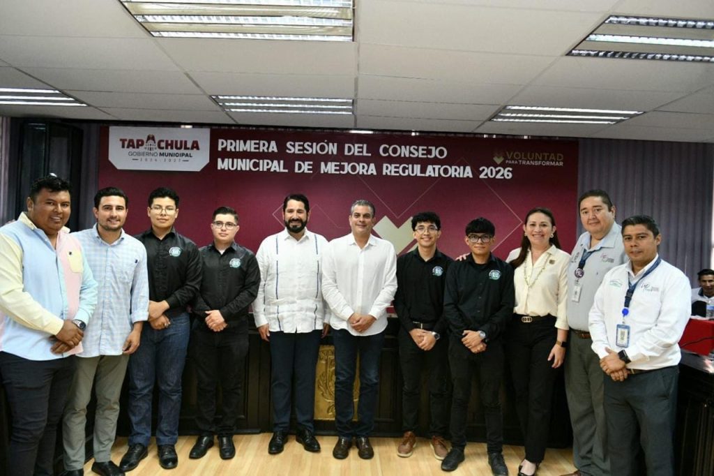 Durante su participación en la 1ª Sesión del Consejo Municipal de Mejora Regulatoria 2026, el alcalde Yamil Melgar Bravo afirmó que, con la suma de voluntades de los sectores industrial, académico, productivo y empresarial, Tapachula avanza hacia la digitalización de sus servicios, con el objetivo de brindar atención más rápida, transparente y accesible a la ciudadanía.